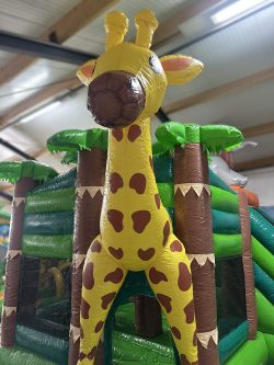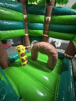 Met zijn vrolijke kleuren, coole jungle-prints en geïntegreerde glijbaan biedt dit springkussen uren speelplezier voor kinderen. Het springgedeelte is ruim en veilig, en door het leuke thema worden kinderen meteen enthousiast om te spelen en te ontdekken.
