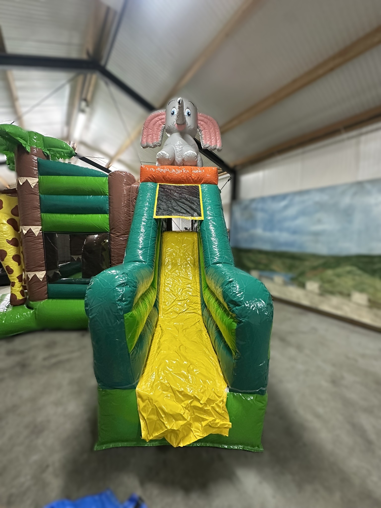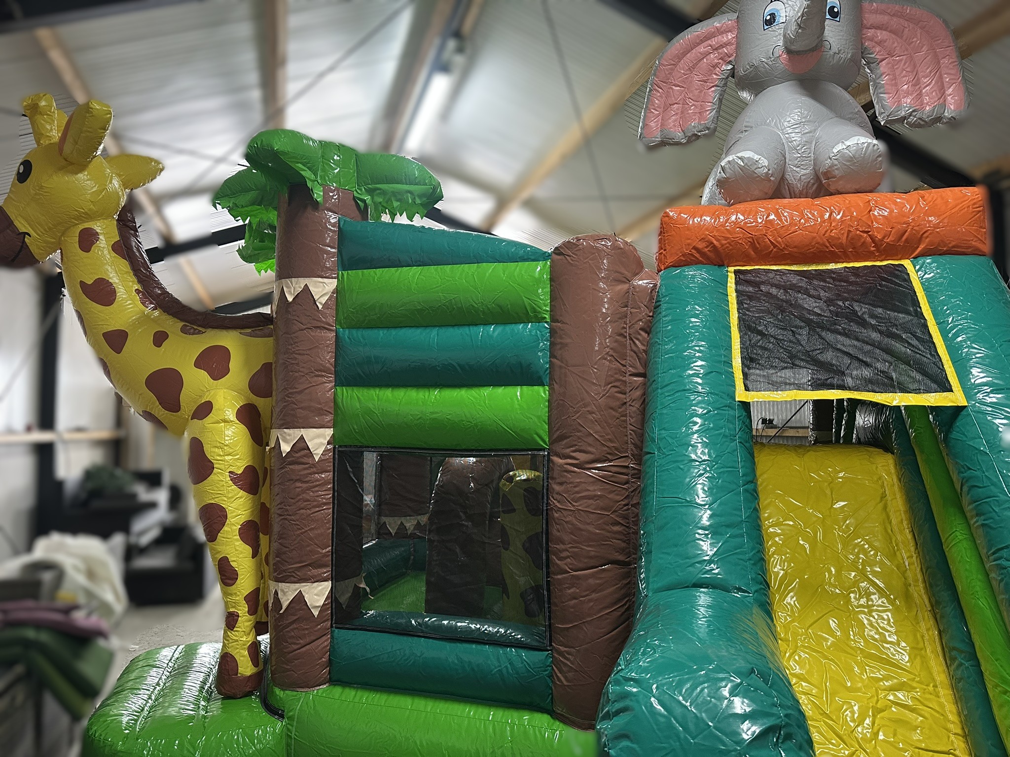Breng het oerwoud tot leven op jouw feest of evenement met het Springkussen Jungle Multi Fun! Dit spectaculaire jungle-thema springkussen vormt dé blikvanger voor kinderfeestjes, buurtdagen, schoolactiviteiten en familie-evenementen. Kinderen kunnen hier volop springen, rondrennen én van de glijbaan roetsjen — plezier gegarandeerd!